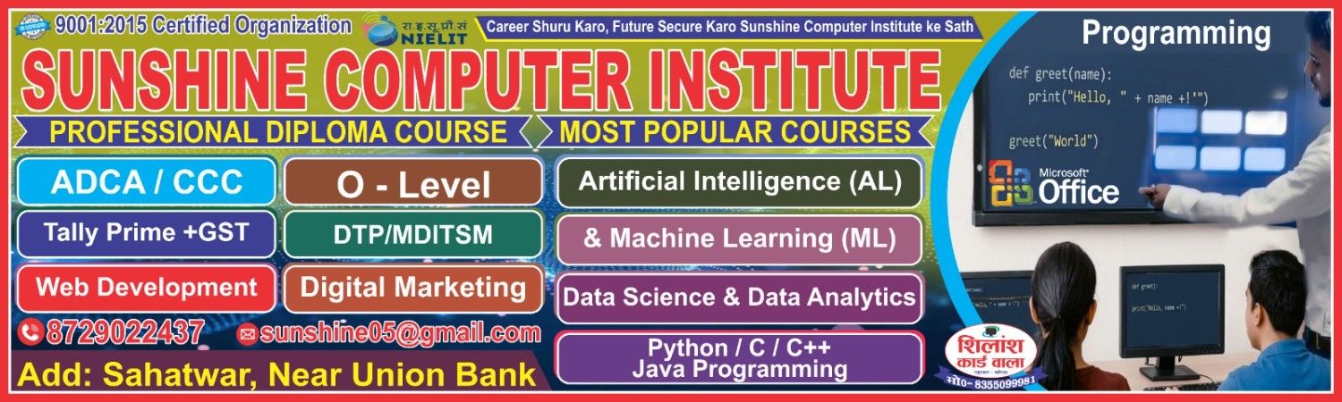 New Branch by Name SUNSHINE COMPUTER INSTITUTE going to Open soon with Multiple systems for Laboratory to do practice and to make good support provided by experts.
